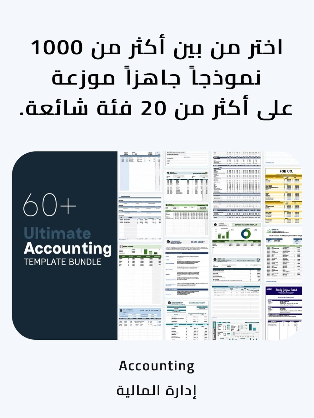 احصل على جميع ملفات Excel التي تحتاجها لإدارة أعمالك وحياتك، بملفات جاهزة باللغة العربية والإنجليزية.